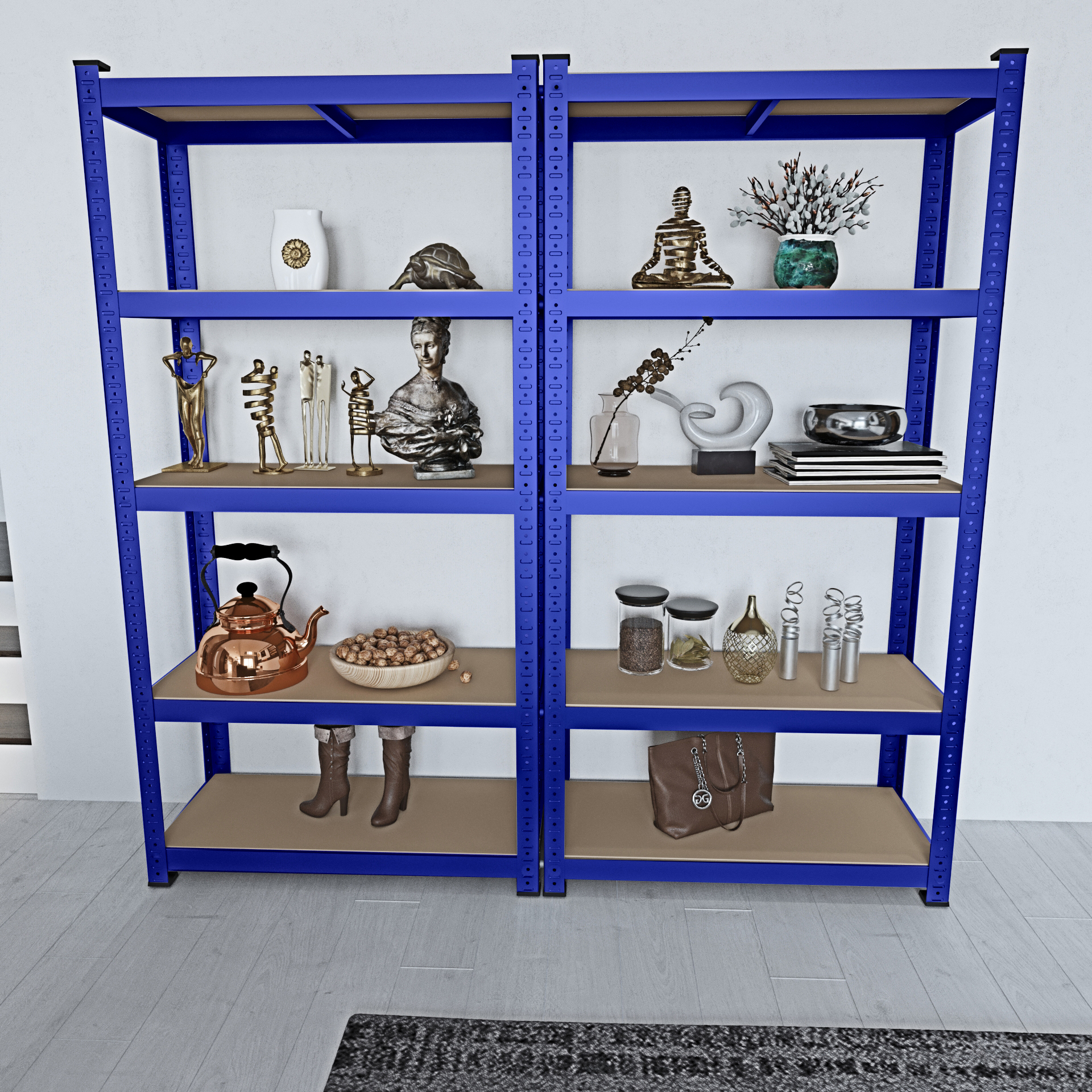 2 Scaffali In Metallo E MDF Scaffale Ad Alta Portata Fino a 875 kg Con 5 Ripiani Regolabili Ideale Per Garage Officina Cantina Capannone Magazzino Design Modulare 180 x 90 x 40 cm (Blu)